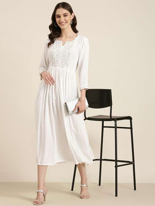 - Look and feel your best with the fresh collection of white colorful ethnic dresses with trending diverse designs and silhouettes to choose from.