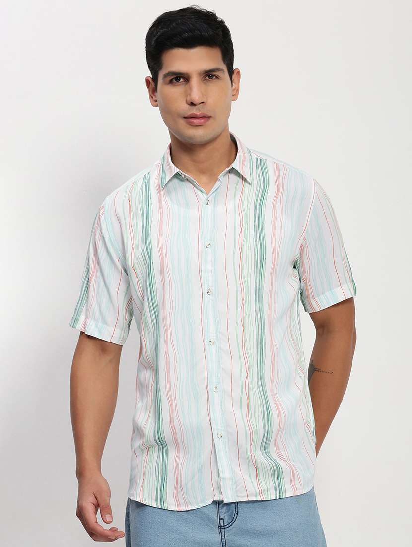men short sleeves striped casual shirt