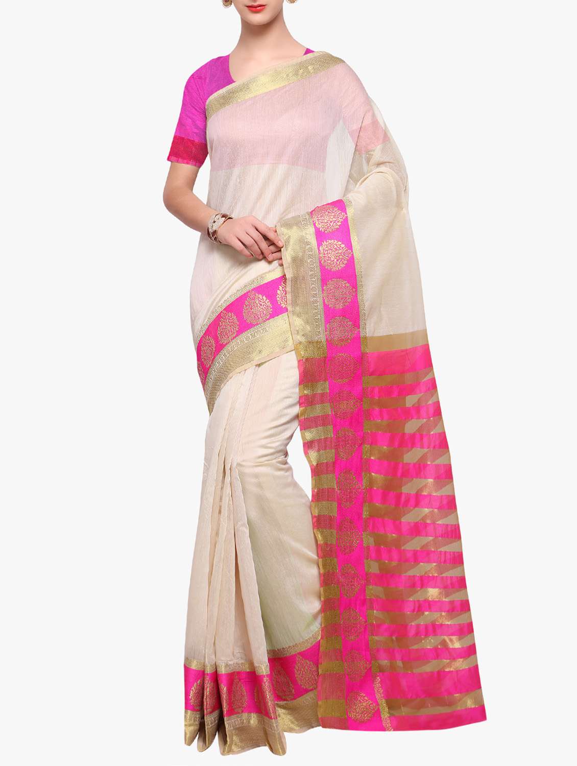 - » cream cotton silk bordered saree with blouse