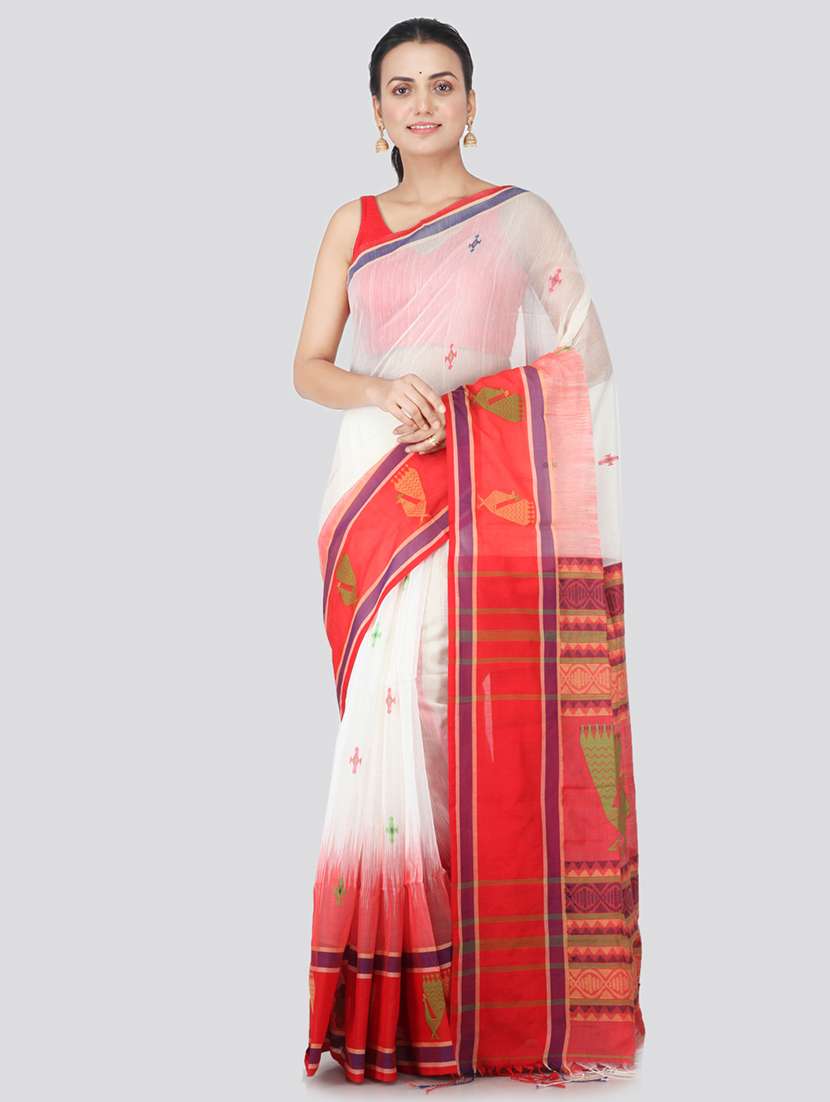 - » white cotton silk handloom saree with blouse
