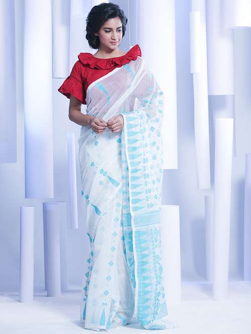 women's self design white colored saree