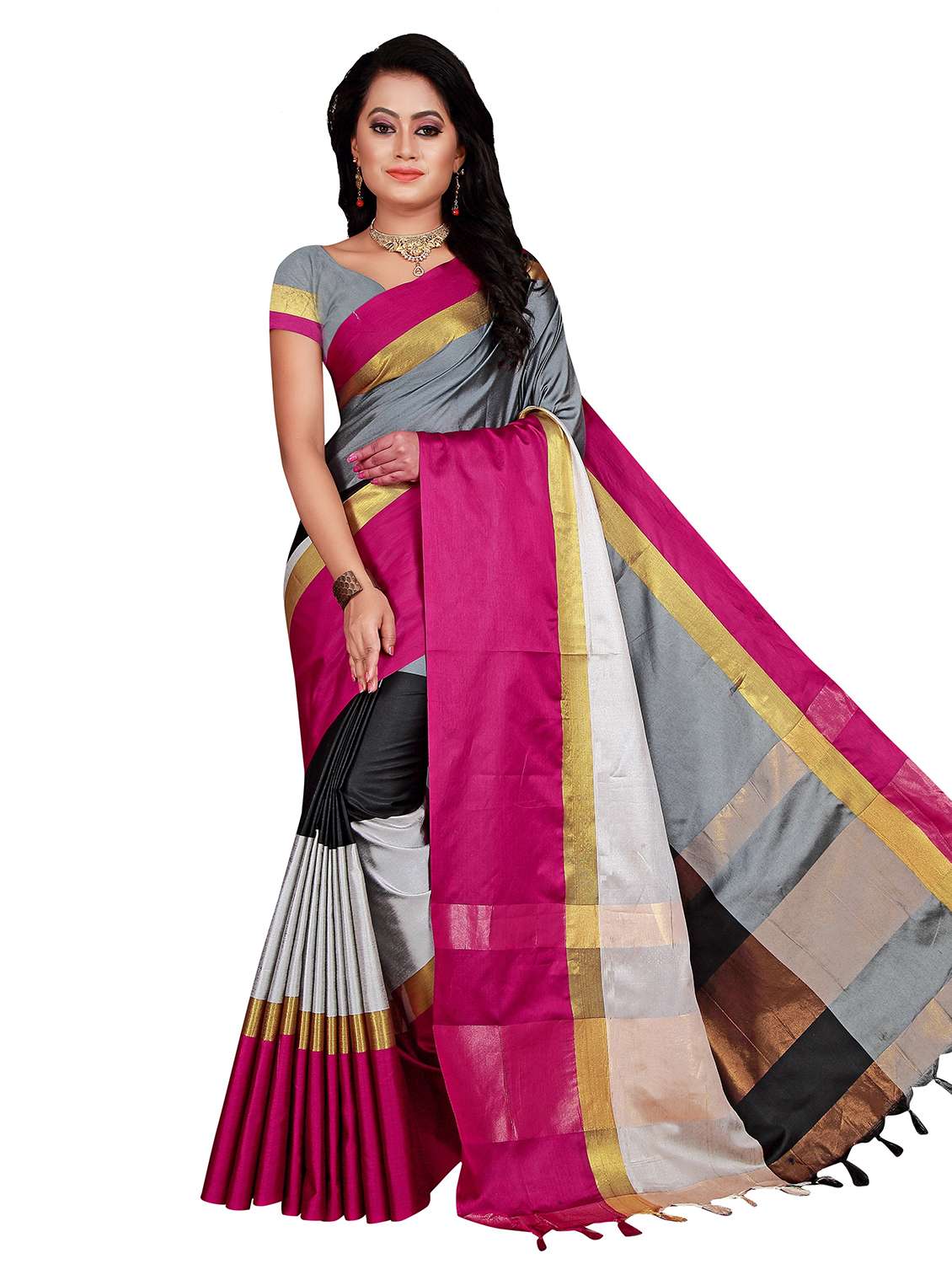 - » women's color block multi colored saree with blouse