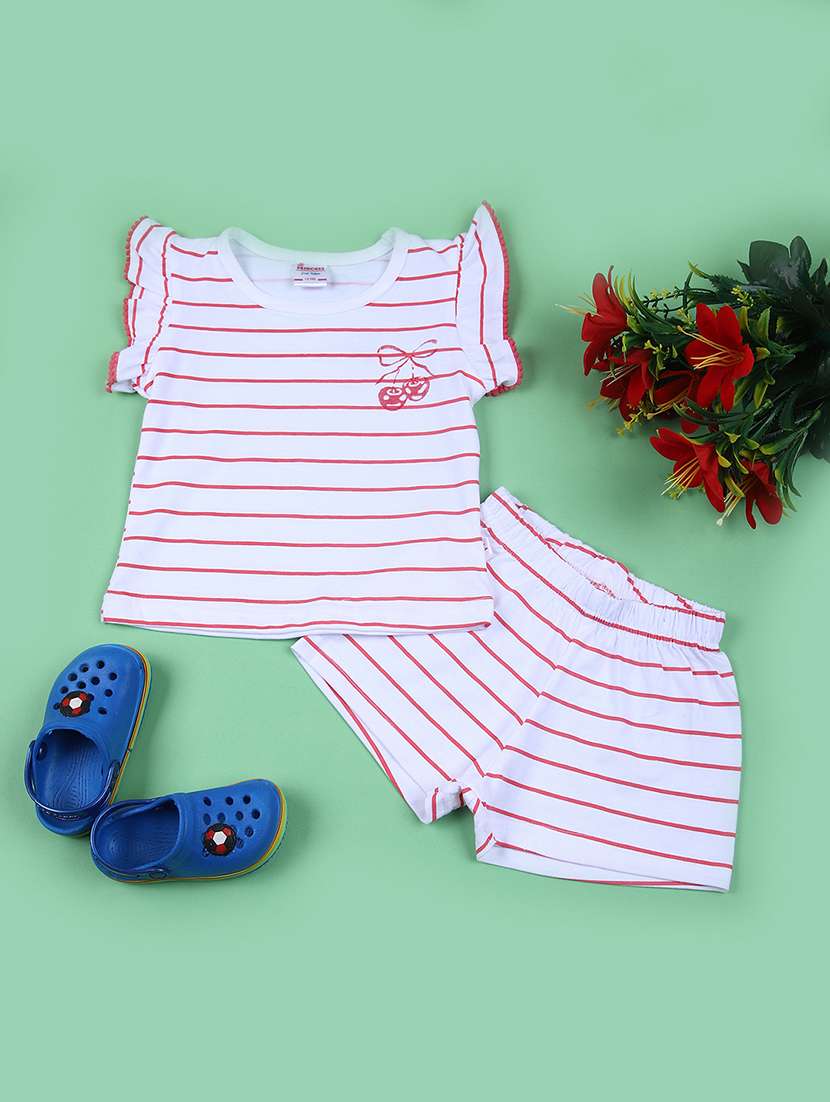 girls striped sleeveless shorts set