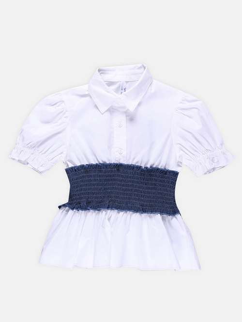 - » women solid collared puff sleeves top