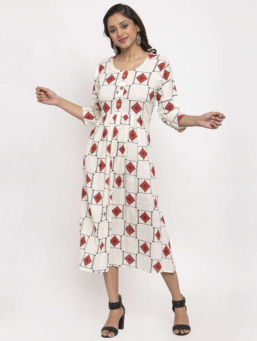 - » round neck printed a-line dress