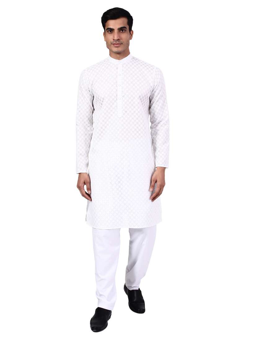 white printed kurta pyjama set
