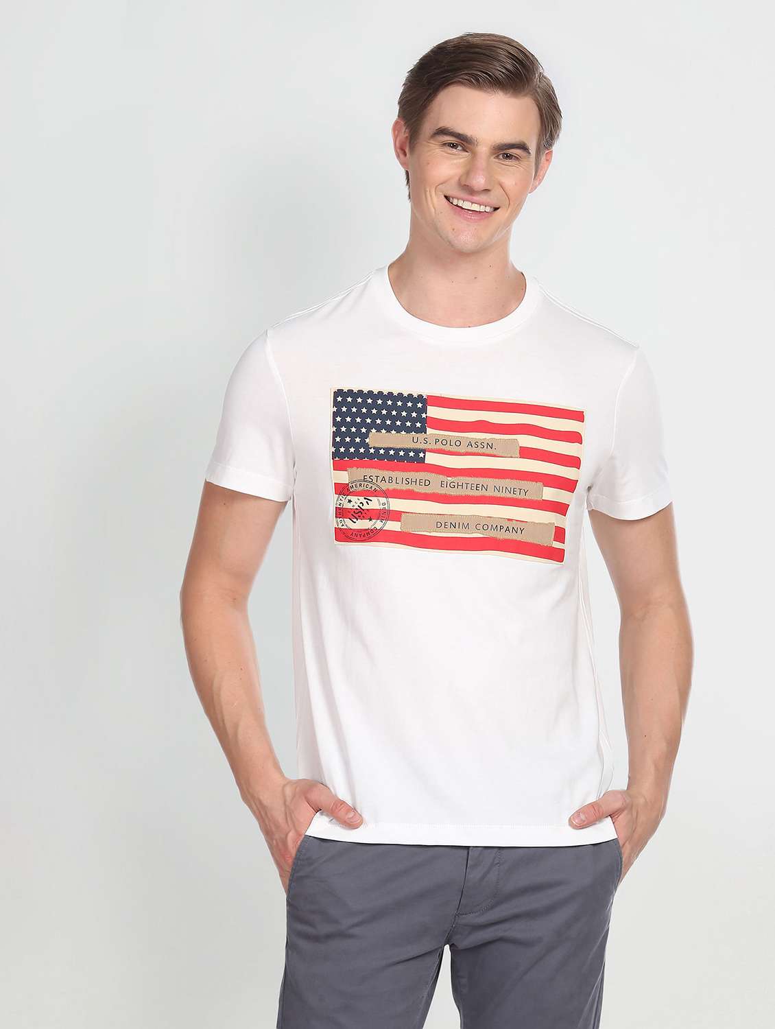 white cotton chest print tshirt