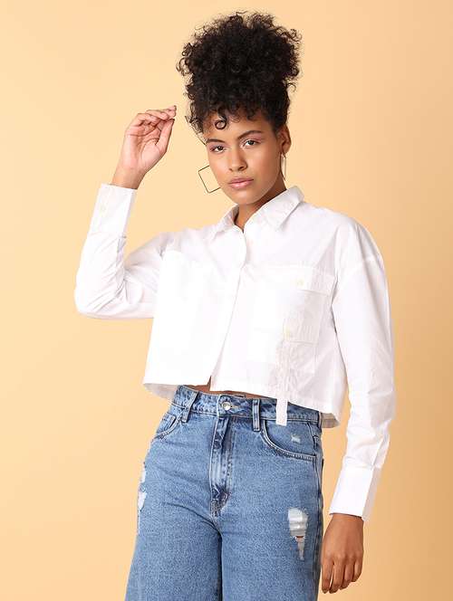 - » white solid crop shirt