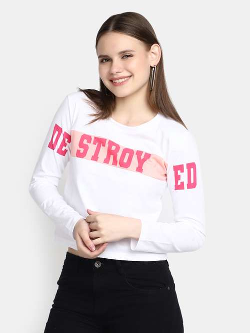 - » white typography casual top