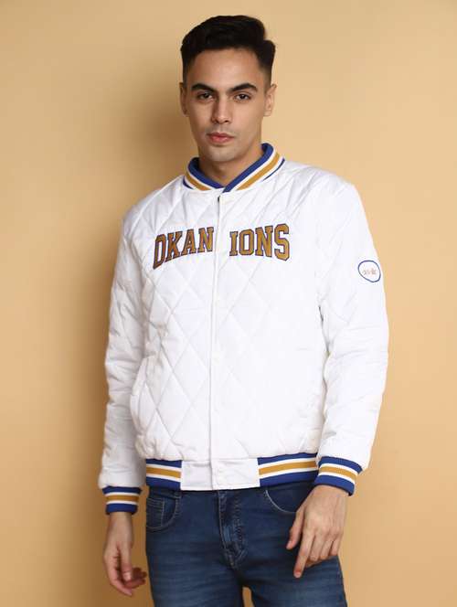 white embroidery detailed quilted casual jacket