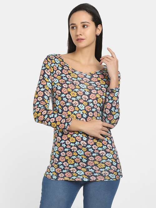 women multicolored floral printed regular top - 20812405 - Very Small Image - 1