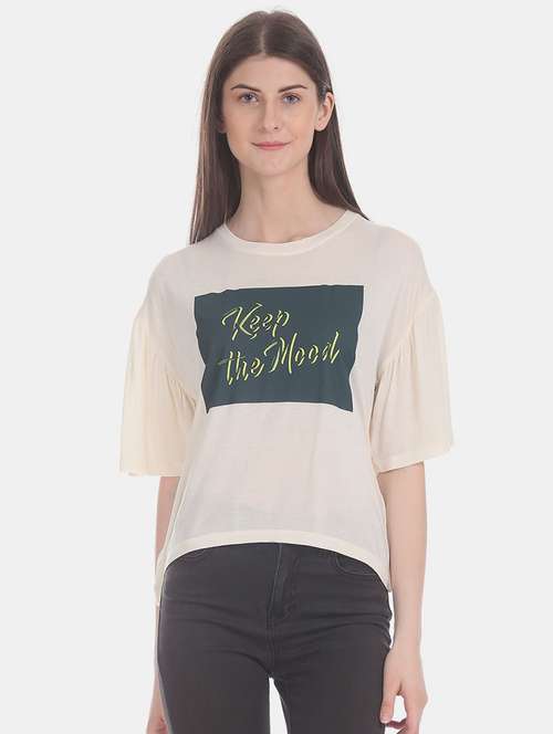 - » cream cotton chest print t-shirt
