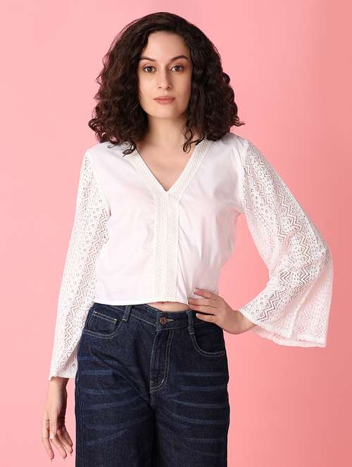 white self-designed crop top