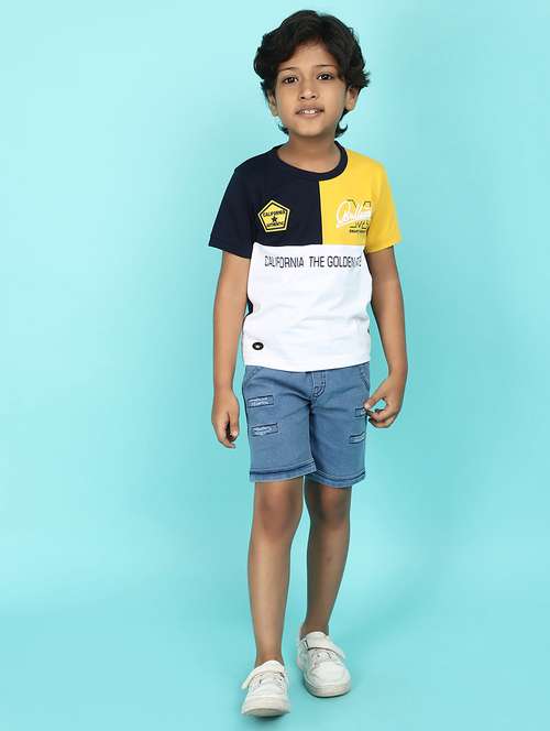- » navy blue printed cotton t-shirt & shorts set