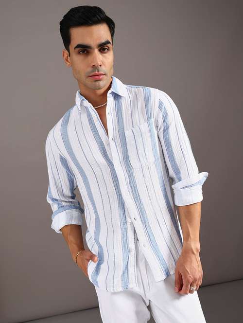 men striped long sleeve regular fit casual shirt