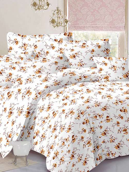 valtellina floral white cotton double bed sheet with 2 pillow cover - tc-250 - 10630289 - Very Small Image - 1