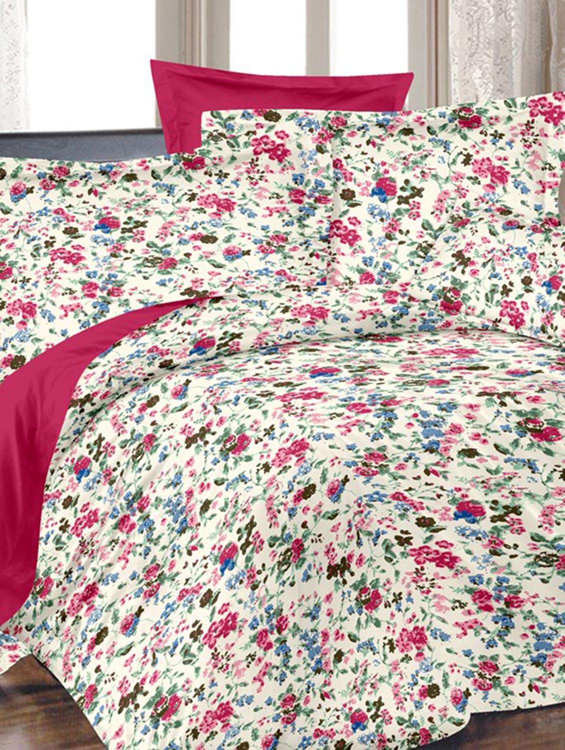 valtellina floral white cotton double bed sheet with 2 pillow cover - tc-250