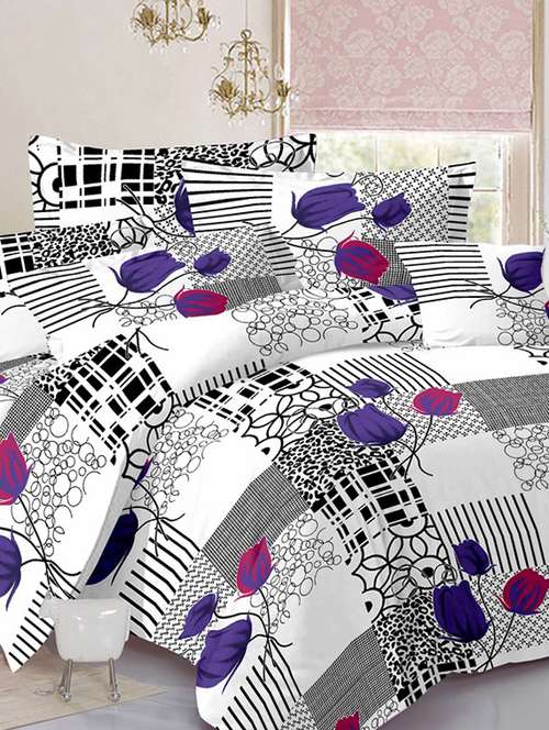 - » valtellina floral white cotton double bed sheet with 2 pillow cover - tc-250