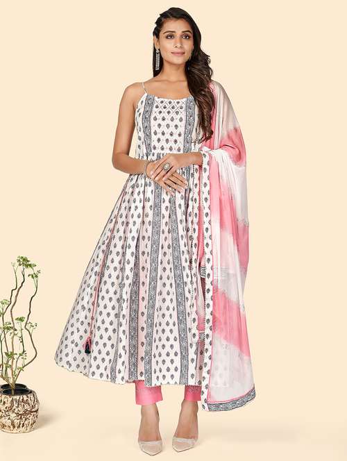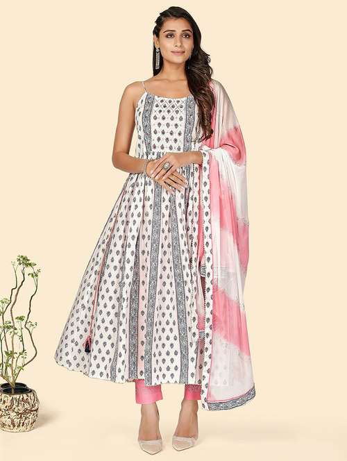 • Find gorgeous sets of ethnic wears in trending designs in white colors suitable for festive wear of occasions.