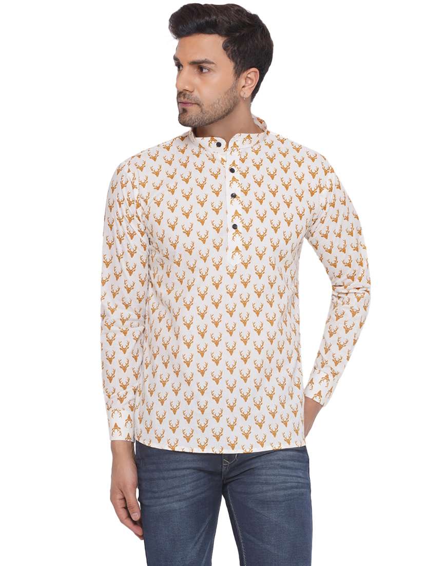 Veera Paridhaan Sanganeri Printed Shirt for Men (White, Size-36)-This Sanganeri Printed Shirt is Ideal to be worn with Trouser/Pant Payjama or Denims, Pair These fashionable Full sleeve Sanganeri Printed Shirt with sandals, mojaris and you can get compliments for your perfect styling. Made from smooth Cotton fabric, this one can surely make you earn brownie points.