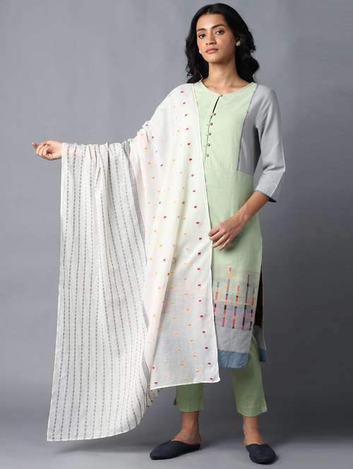 white cotton dupatta - 18406467 - Very Small Image - 1