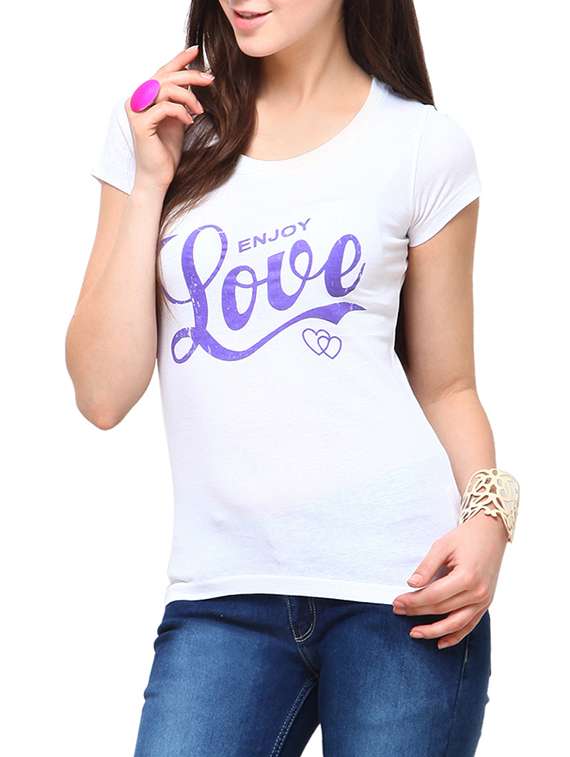 white printed cotton regular tee