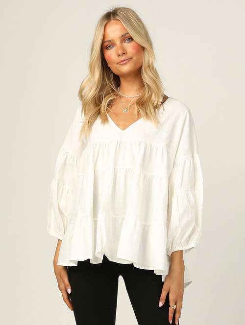 v-neck solid tiered top