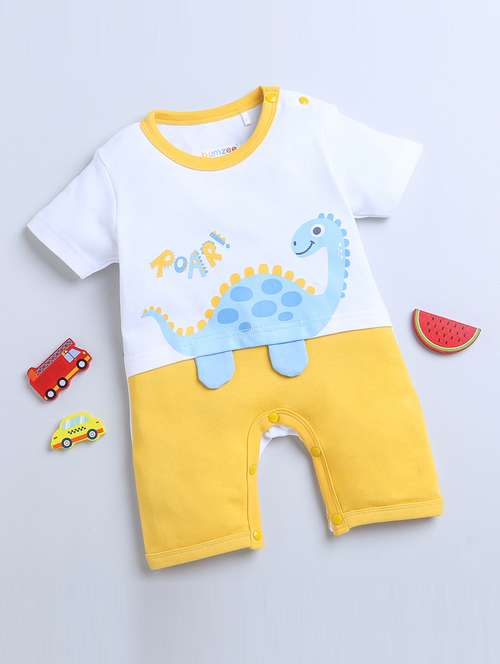 - » yellow & white character detailed romper