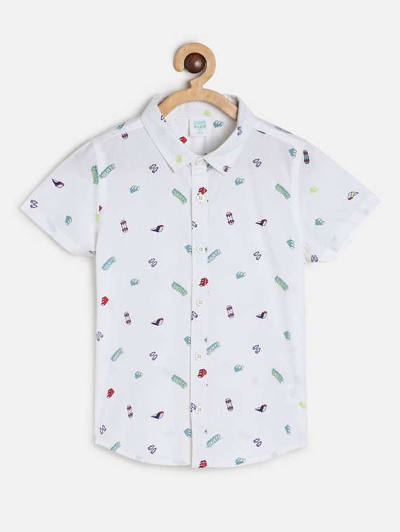 - » boys white printed cotton shirt