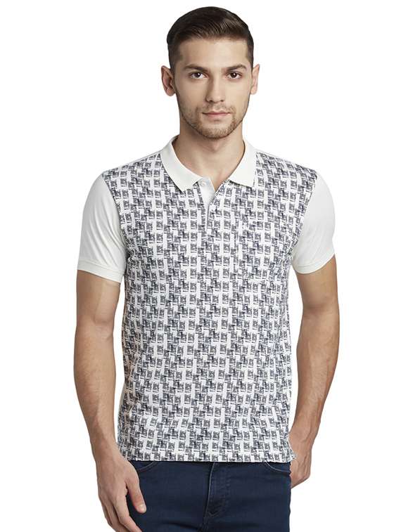 white printed polo t-shirt