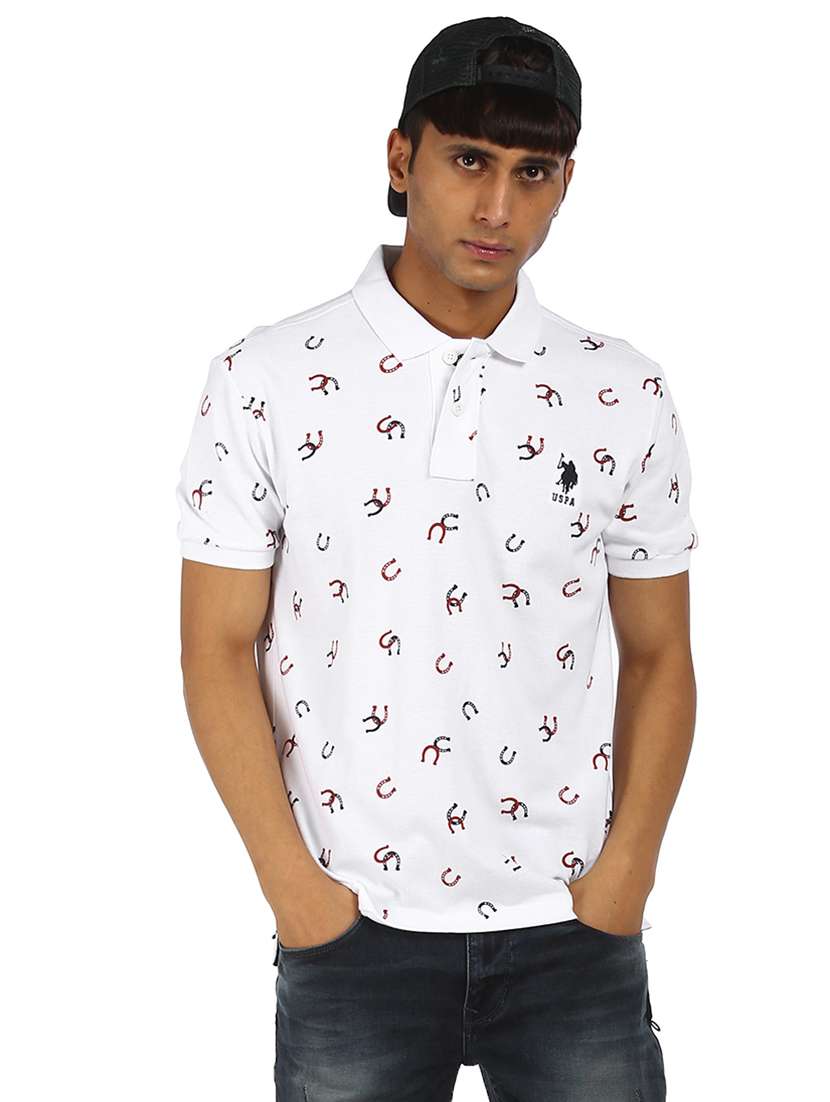 white printed polo t-shirt