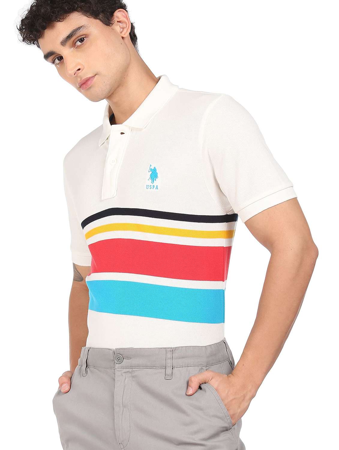 - » white color-blocked polo t-shirt