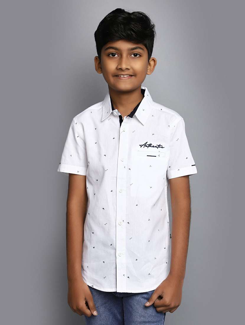 boys white printed cotton shirt