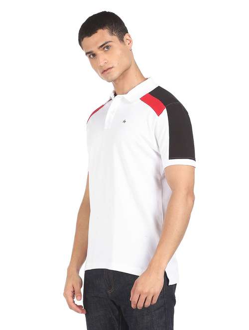 - » white ribbed collar colour block polo shirt