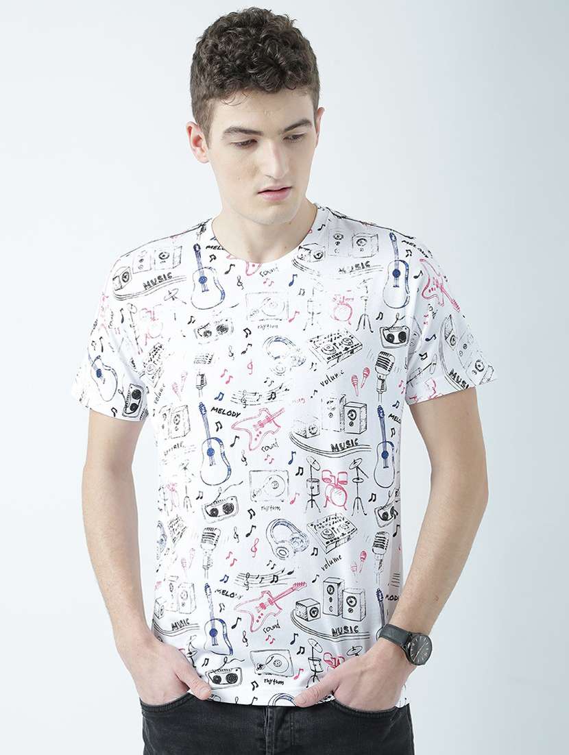 - » round neck printed regular t-shirt