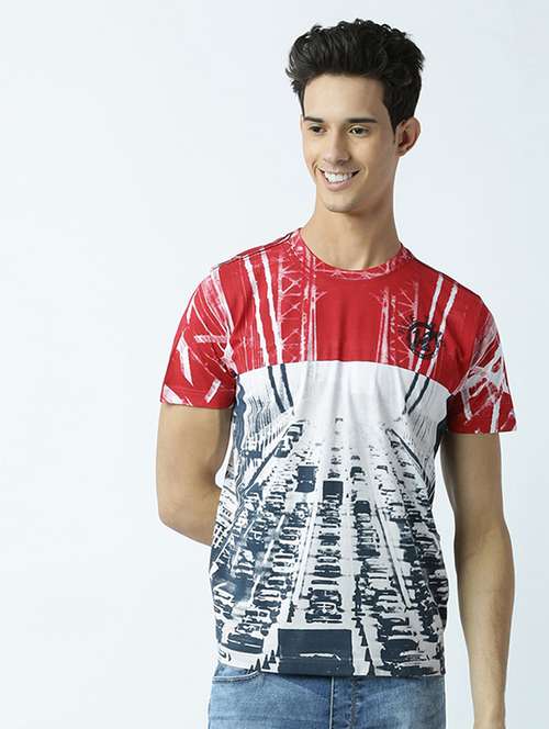- » round neck printed regular t-shirt
