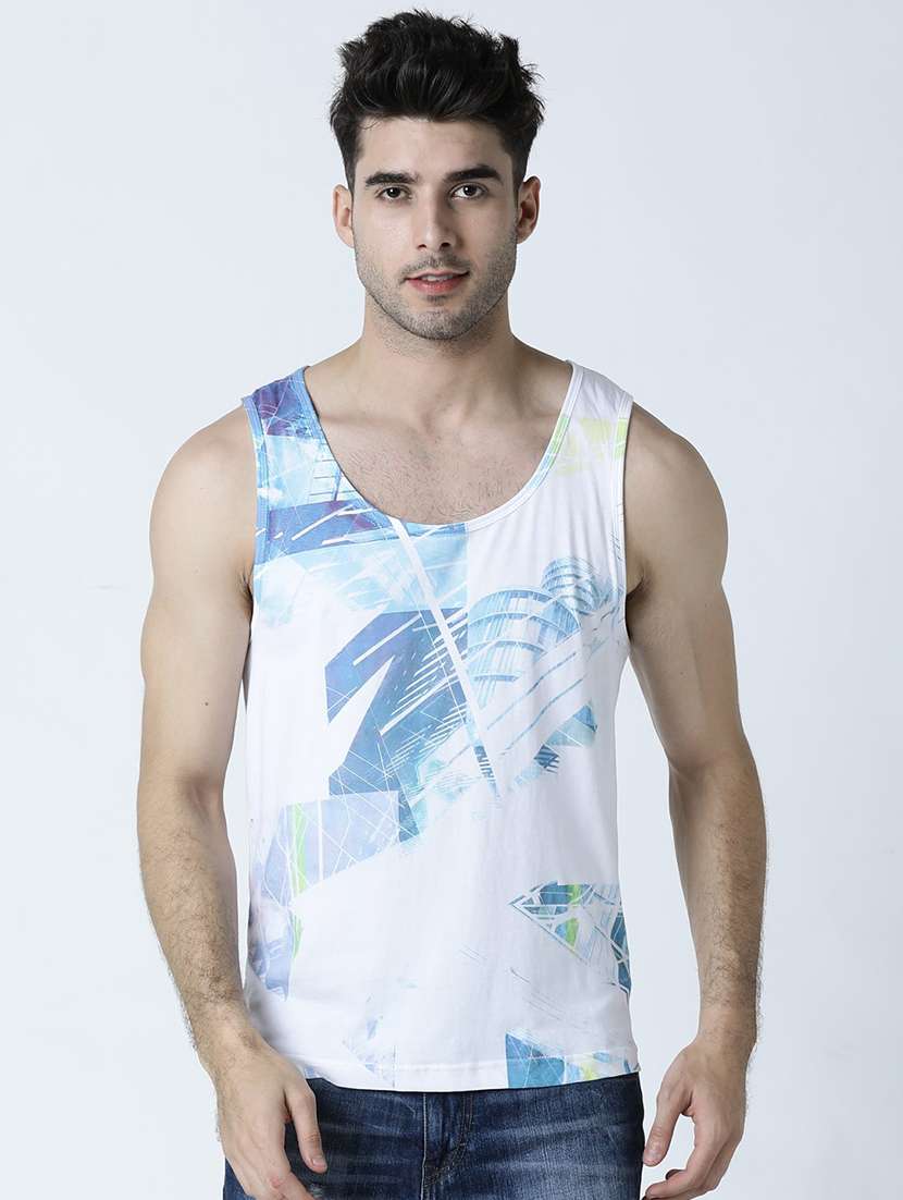 - » men scoop neck front print sleeveless vest