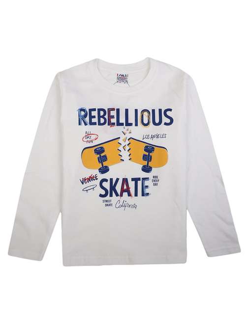 white printed round neck t-shirt