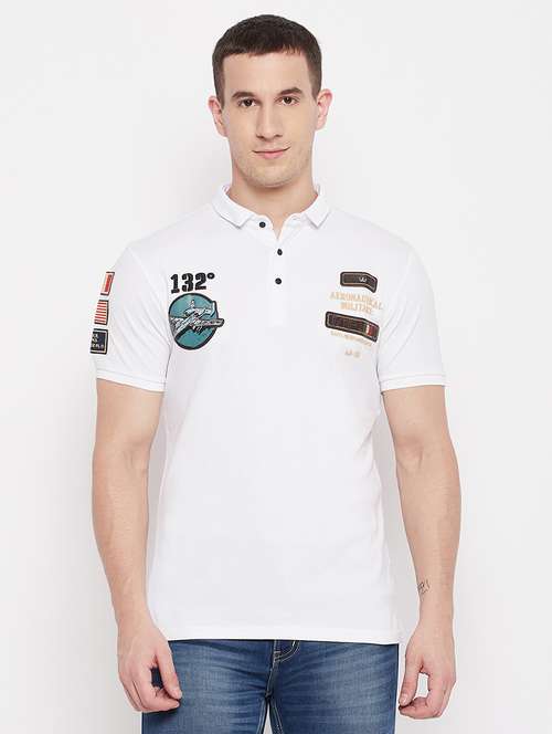 - » white printed collared t-shirt