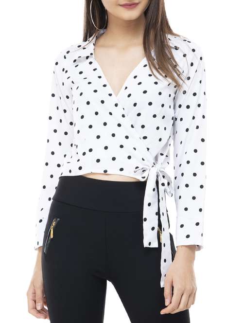 polka dotted tie-knot wrap top