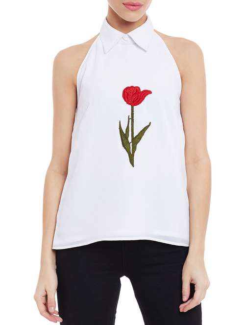 white crepe regular top