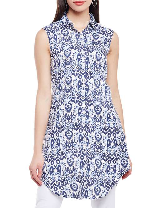 blue printed crepe tunic