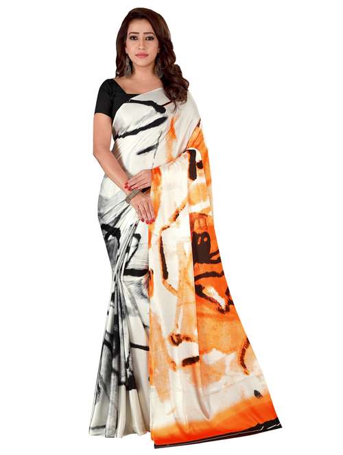- » women's abstract white colored saree