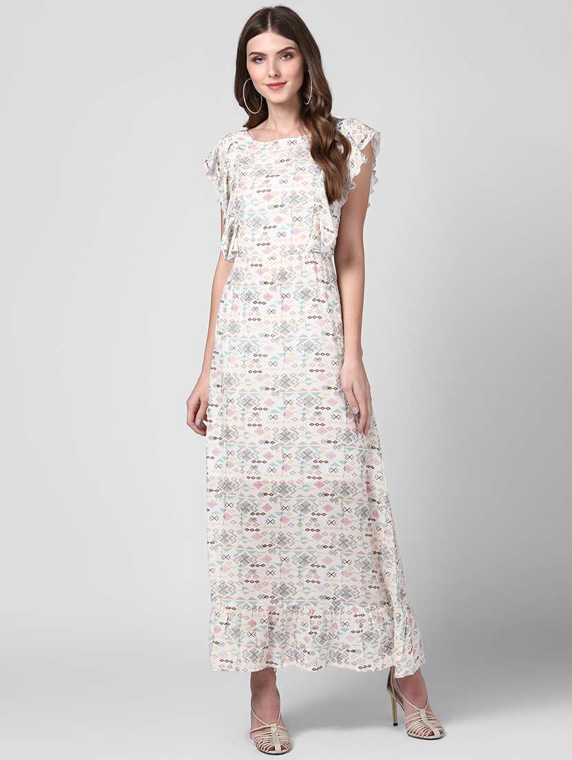 - Dress up in a soothing pattern and don this dress made of crepe material.