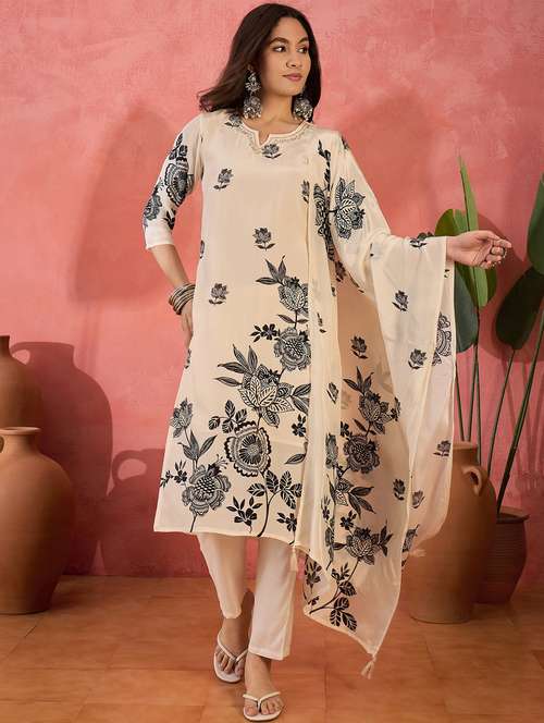 • Find gorgeous sets of ethnic wears in trending designs in cream colors suitable for festive wear of occasions.