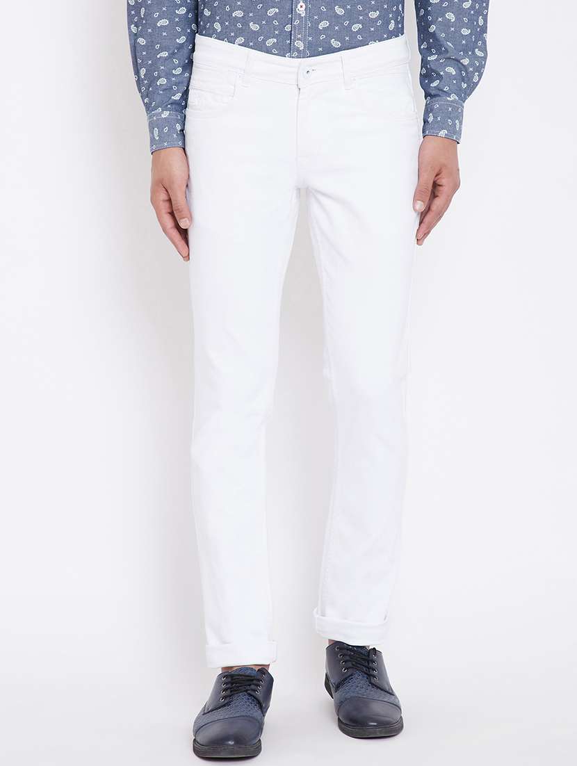 white plain denim jeans