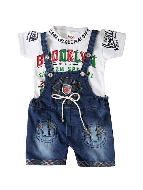 - » boys denim printed dungaree set