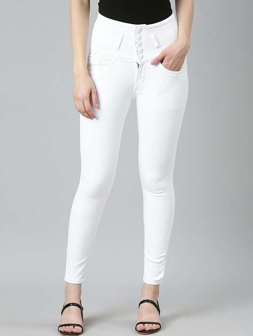 - Choose from the trendy assortment of slim fit jeans in a variety of white colors and timeless designs to complete your clothing essential list.