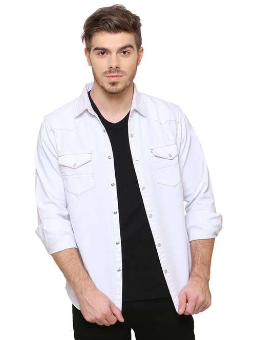 - » white solid denim casual shirt
