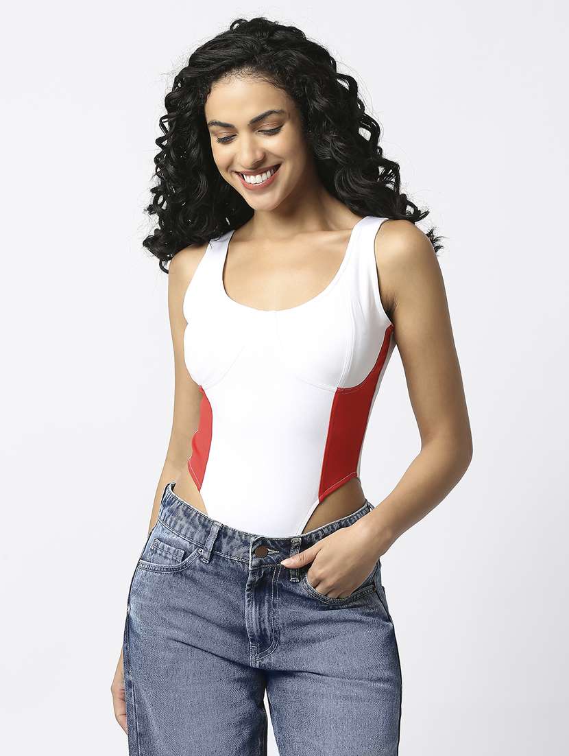 - » colour block high cut bodysuit